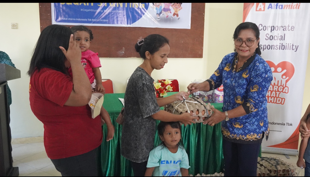 AMBON, MPNews.com – Alfamidi Branch Ambon menjalankan intervensi gizi selama enam bulan bagi 15 keluarga berisiko stunting dan keluarga dengan anak stunting di Kecamatan Teluk Ambon Baguala, Kota Ambon.