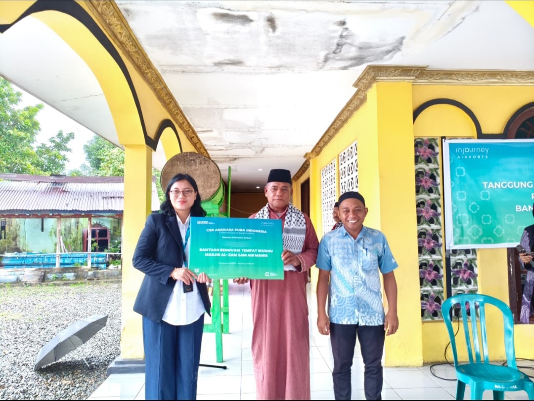AMBON, MPNews.com – PT Angkasa Pura Indonesia melalui Bandara Pattimura Ambon kembali merealisasikan komitmennya dalam Program Tanggung Jawab Sosial dan Lingkungan (TJSL) Tahun 2025. Melalui program bertajuk Injourney Airports Revitalisasi Rumah Ibadah, Bandara Pattimura menyalurkan bantuan untuk renovasi tempat wudhu Masjid Al-Zam Zam Dusun Air Manis Negeri Laha serta revitalisasi Gereja GPM Lanud Pattimura.