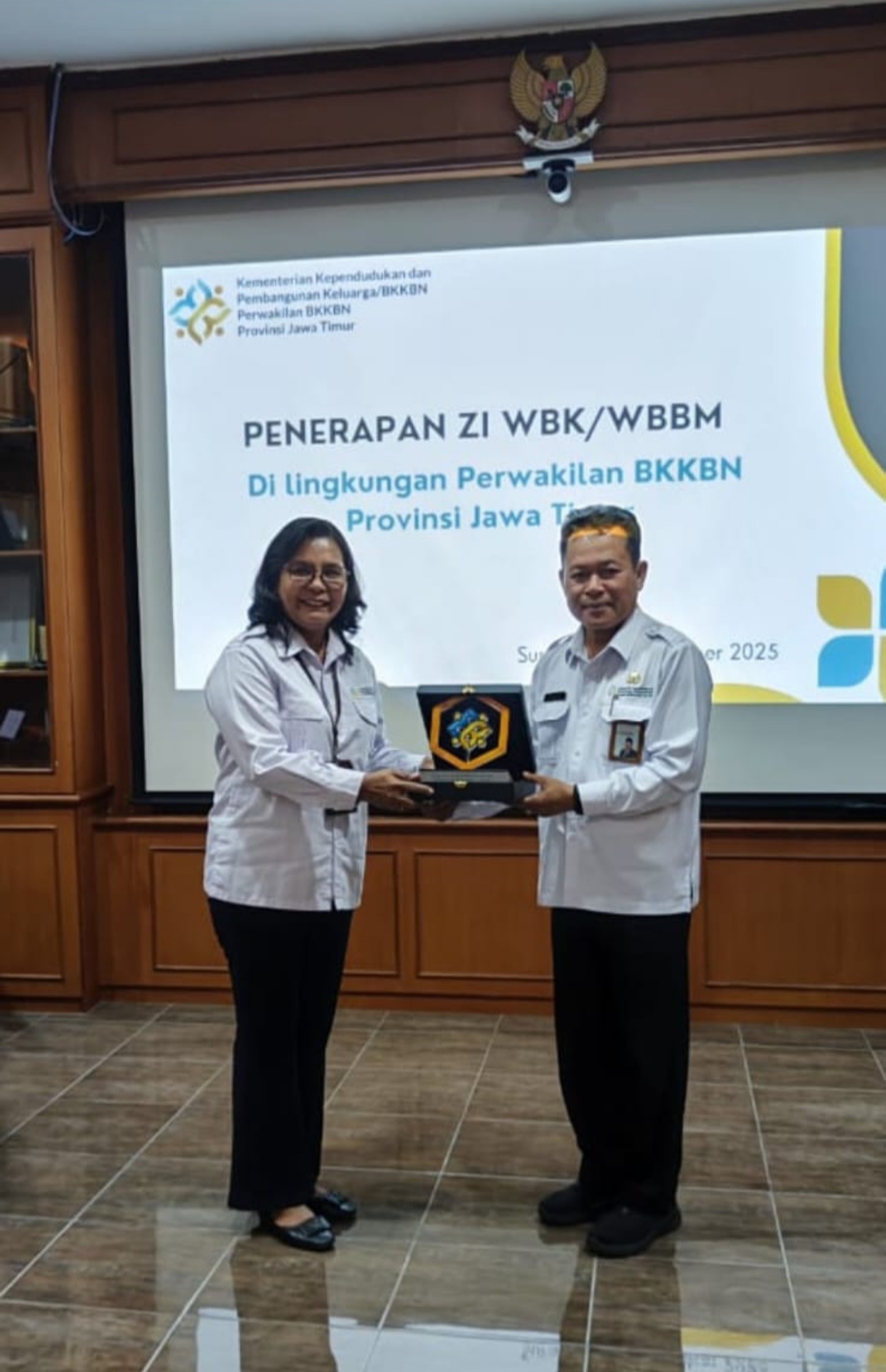 Plh.Kepala BKKBN Jawa Timur menjelaskan capaian peningkatan indeks WBBM yang terus naik dari tahun ke tahun hingga mencapai 91,12, serta berbagai inovasi yang mendukung integritas dan pelayanan publik. Selain berhasil memepertahankan ISO 37001:2026 Anti Penyuapan, Jatim juga mendapat penghargaan Komisi Informasi sebagai Badan Publik Informatif berkat keterbukaan informasi publik serta optimalisasi berbagai kanal media digital dalam mendukung pelayanan masyarakat.