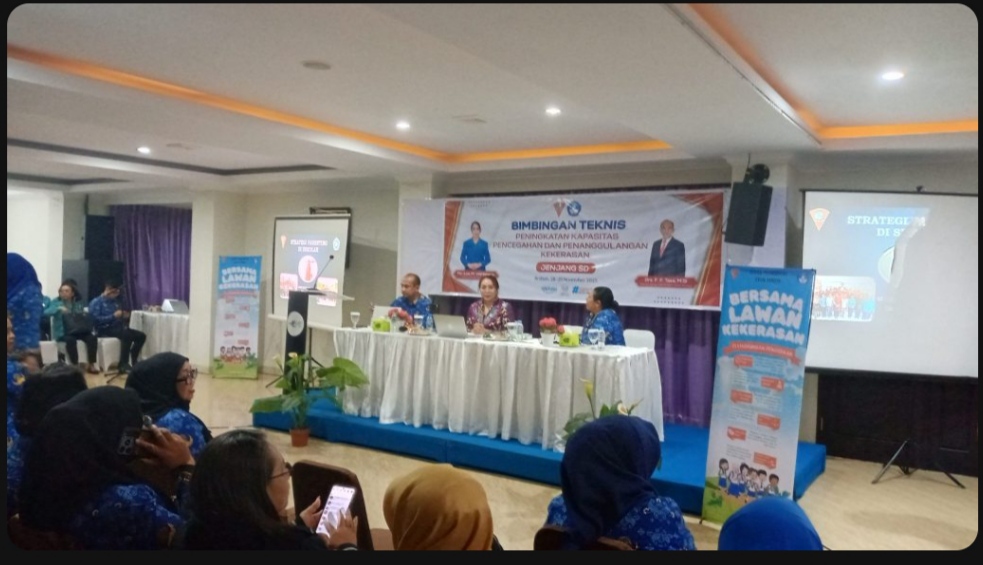 AMBON, MPNews.com – Dinas Pendidikan Kota Ambon menggelar bimbingan teknis peningkatan kapasitas pencegahan dan penanggulangan kekerasan bagi siswa SD dan SMP se-Kota Ambon yang bertempat aula Pasifik hotel,Selasa(28/10/2025).