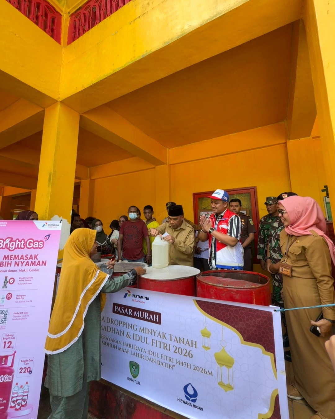Tual, MPNews.com – PT Pertamina Patra Niaga melalui Sales Area Retail Maluku mendukung upaya Pemerintah Daerah dalam memastikan ketersediaan minyak tanah bagi masyarakat menjelang Hari Raya Idulfitri 2026 melalui kegiatan Pasar Murah Kota Tual. Dalam Pasar Murah tersebut, Pertamina Patra Niaga menyalurkan extra dropping minyak tanah serta menyediakan produk Bright Gas 5,5 Kg & 12 Kg dengan potongan harga khusus.