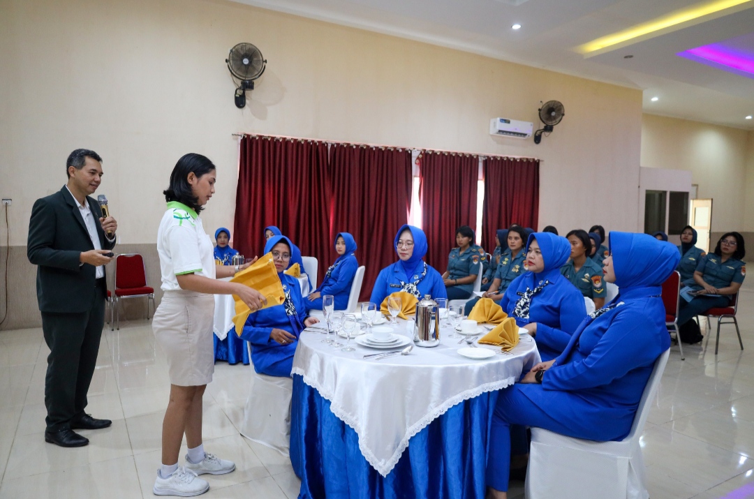 Pelatihan tersebut diberikan kepada ibu-ibu Jalasenastri dan Kowal Kodaeral IX Ambon yang bekerja sama dengan Hotel Swiss Bell Ambon guna meningkatkan skill dibidang _Table Manner_