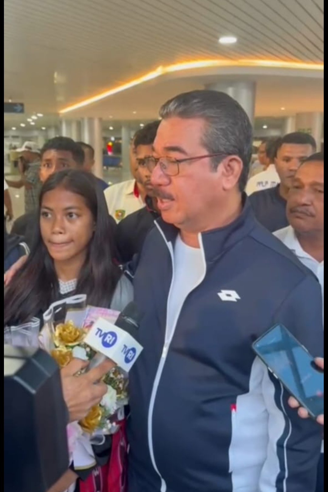 Ambon, MPNews.com – Gubernur Maluku Hendrik Lewerissa menjemput langsung Atlit Girsha Imanuela Saimima yang telah mengikuti kejuaraan Nasional antar Sentra Pembinaan Olahragawan Muda Berbakat Nasional (SPOBNAS)/ Sentra Pembinaan Olahragawan Muda Berbakat Daerah (SPOBDA), SKO, SMANOR, PPLPD Seluruh Indonesia yang digelar oleh Kementerian Pemuda dan Olahraga RI di Semarang dan berhasil menyumbang 2 emas untuk Provinsi Maluku bertempat di Bandara Pattimura Ambon, Selasa (21/10/2025).