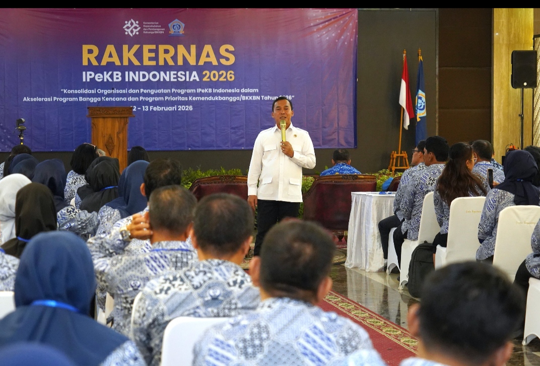 Penegasan tersebut disampaikan saat membuka Rapat Kerja Nasional (Rakernas) IPeKB Indonesia Tahun 2026 yang turut dihadiri Wakil Menteri Kependudukan dan Pembangunan Keluarga, Ratu Ayu Isyana Bagoes Oka, S.Sos, serta diikuti lebih dari 700 penyuluh dari seluruh Indonesia di Gedung Graha Dirgantara, Kamis (12/2/2026).