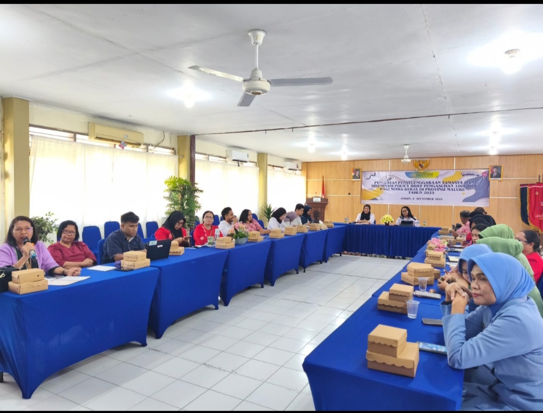 Ambon, MPNews.com – Perwakilan BKKBN Provinsi Maluku menggelar kegiatan Sosialisasi Surat Edaran Bersama (SEB) 6 Menteri tentang Pembentukan dan Penyelenggaraan Tempat Penitipan Anak (TPA) serta Diseminasi Policy Brief Pengasuhan 1000 Hari Pertama Kehidupan (HPK) di Ruang Baileo Kencana, Kantor BKKBN Maluku, Senin (8/9/2025).