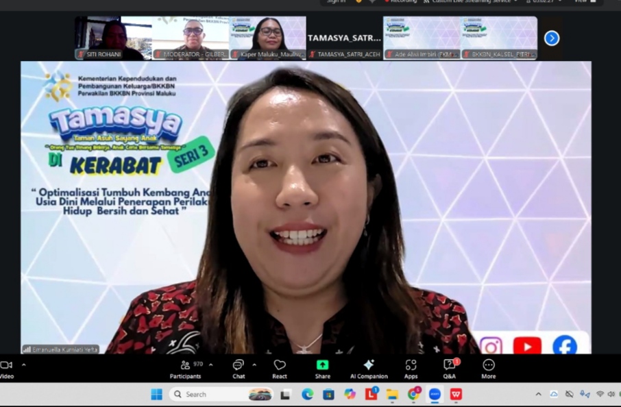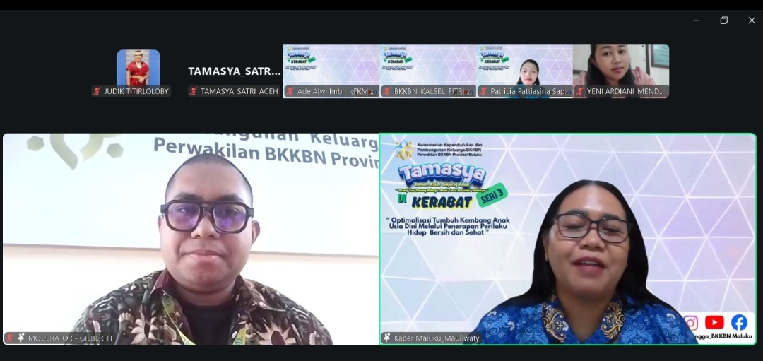 AMBON, MPNews.com – Dalam upaya memperkuat peran keluarga dalam mendukung tumbuh kembang anak usia dini, Perwakilan BKKBN Provinsi Maluku menyelenggarakan kegiatan Taman Asuh Sayang Anak (TAMASYA) melalui Kelas Orang Tua Hebat (KERABAT) Seri 3 Tahun 2026. Kegiatan ini mengangkat tema “Optimalisasi Tumbuh Kembang Anak Usia Dini Melalui Penerapan Perilaku Hidup Bersih dan Sehat (PHBS)” yang diikuti oleh mitra kerja, Penyuluh KB/PLKB, Tim Pendamping Keluarga, kader, pengasuh, serta orang tua se-Indonesia, baik secara daring melalui Zoom Meeting maupun YouTube (19 Februari 2026).