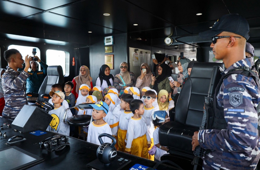 Selain itu, para siswa diberikan kesempatan untuk melihat langsung anjungan dan berbagai fasilitas tempur kapal, kunjungan tersebut memberikan pengalaman nyata yang berbeda dari pembelajaran di kelas. Pada kesempatan tersebut Komandan Satuan Kapal Patroli (Dansatrol) Kodaeral IX Kolonel Laut (P) Hapsoro A.P., S.H., M.PM., CHRMP menyampaikan “Kodaeral IX memberikan kesempatan kepada masyarakat untuk mengunjungi Kapal Perang Republik Indonesia, sekaligus sebagai salah satu pembelajaran dini dan menumbuhkan jiwa kebaharian bagi anak-anak kita”, ujarnya.